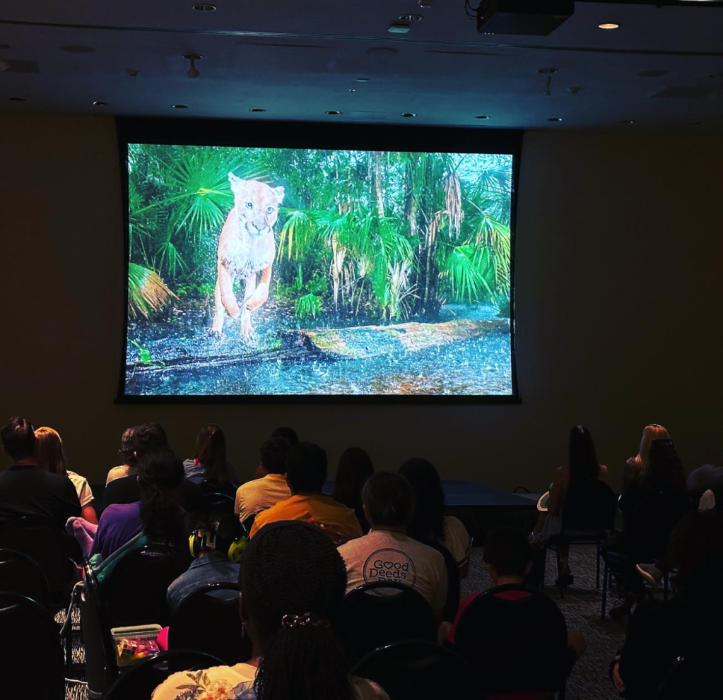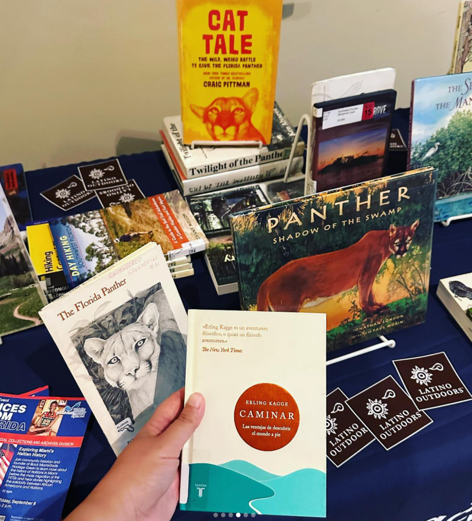 We had an amazing time at our @pathofthepanther screening! After the film, Latino Outdoors Miami program coordinator Taylor Brotons shared knowledge and answered questions about co-existing with wildlife in South Florida. We also geeked out over @miamidadepubliclibrary’s selection of books about Florida and hiking, in English and Español 🐾📚🥾